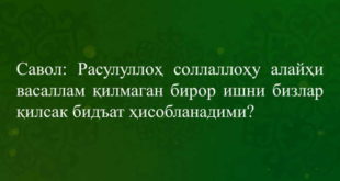 БатафсилРасулуллоҳ соллаллоҳу алайҳи васаллам қилмаган бирор ишни бизлар қилсак бидъат ҳисобланадими?
