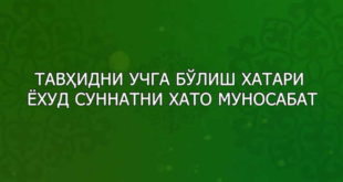 БатафсилТАВҲИДНИ УЧГА БЎЛИШ ХАТАРИ ЁХУД СУННАТГА ХАТО МУНОСАБАТ