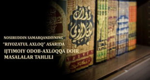 BatafsilNOSIRUDDIN SAMARQANDIYNING “RIYOZATUL AXLOQ” ASARIDA IJTIMOIY ODOB-AXLOQQA DOIR MASALALAR TAHLILI