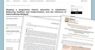 Малайзиядаги Селангор ислом университетининг илмий нашри бўлган “Ал-Иршод” журналида Имом Бухорий халқаро илмий-тадқиқот маркази директорининг ўринбосари Отабек Муҳаммадиев ва марказ халқаро стипендия дастури ғолиби Ашраф Ишроқий бин Жамилнинг “Ўзбекистонда илғор исломий таълимни шакллантириш: анъана ва замонавийлик уйғунлашуви ва Маҳмудхўжа Беҳбудий таъсири” номли мақоласи эълон қилинди. Мақолада Ўзбекистонда диний таълимнинг шўро …