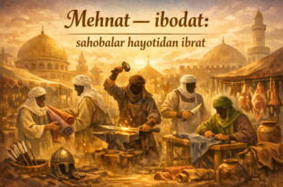 Kasb-hunar bobida sahobalar hayoti biz uchun eng goʻzal namunadir. Paygʻambarimiz sollallohu alayhi vasallam asʼhoblarining hammasi oʻz kasbi bilan mashgʻul boʻlgan. Xususan, Abu Bakr Siddiq roziyallohu anhu mato savdosi, Usmon ibn Affon, Talha, Abdurahmon ibn Avf roziyallohu anhum savdogarlik, Zubayr ibn Avvom roziyallohu anhu qassoblik, Saʼd ibn Abu Vaqqos roziyallohu anhu …