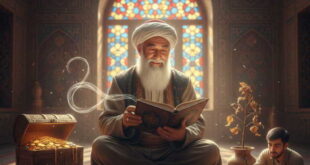 “Ey farzand, oʻzingni mol jam qilishdan gʻofil tutmagil, ammo halollik bilan mol toʻplashga harakat qil. Mol uchun oʻzingni xavf-xatarga qoʻyma. Molni jam etganingdan keyin uni yaxshi saqlagil va har bir yaramas ish uchun sarf qilaverma, chunki molni saqlash yigʻishdan qiyindir. Agar kerak vaqtda zarur ish uchun sarf qilsang, harakat qilib …