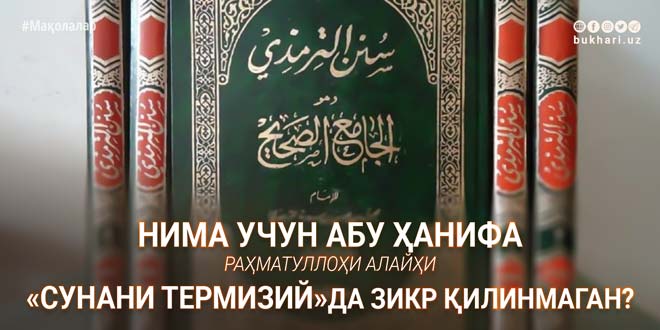Саволнинг келиб чиқиши шундан иборатки, бобомиз Имом Термизий раҳимаҳуллоҳ ҳадисларни ривоят қила туриб, уларга бўлган фақиҳ ва мужтаҳидларнинг фикрларини, уларнинг муборак исмларини тилга олиб зикр қиладиларда, лекин биз севиб унга эргашадиган «Ҳанафия» мазҳаби имомларини, хоссатан, Имом Абу Ҳанифа, Имом Абу Юсуф ва Имом Муҳаммад раҳматуллоҳи алайҳимларнинг исмларини зикр қилмасдан, умумий ном билан, яъни «Куфа аҳли» ибораси билан уларнинг фикрларини келтирадилар. Бу эса, ўқувчини ҳар хил уй ва хаёлларга олиб боради.