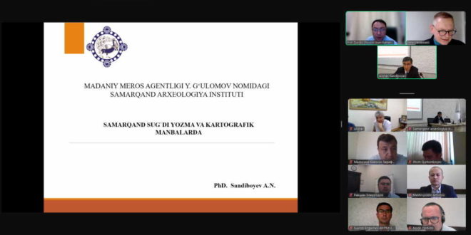 Имом Бухорий халқаро илмий-тадқиқот марказида Германиянинг Гамбург университети ҳузуридаги Осиё-Африка тадқиқотлари институти билан ҳамкорликда “Зарафшон воҳаси маданий бойликлари” туркумида навбатдаги онлайн семинар бўлиб ўтди. Унда Марказ ходимлари, юртимиз ва хориждаги илмий муассасалар тадқиқотчилари, шунингдек, Германия, Туркия ва АҚШ каби давлатлардан олимлар иштирок этди.