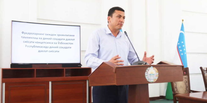 Бугунги глобал таҳдидлар ва ғоявий таъсирлар шароитида жамиятда барқарорликни таъминлаш, фуқароларнинг диний эҳтиёжларини соғлом асосда қондириш ҳамда ёшларни турли мафкуравий таъсирлардан ҳимоя қилиш мақсадида мамлакатимизда изчил давлат сиёсати юритилмоқда. Бу сиёсат “Ўзбекистон Республикасида диний соҳадаги давлат сиёсати концепцияси”да ўз ифодасини топган бўлиб, унинг мазмун-моҳиятини жойларда кенг жамоатчиликка етказиш долзарб вазифалардан ҳисобланади.
