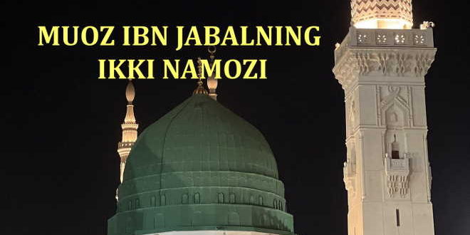 Муоз ибн Жабал розияллоҳу анҳу Набий соллаллоҳу алайҳи васаллам билан бирга Масжидун набавийда намоз ўқир эди. Сўнг ўз қавми Бану Салимага қайтиб келиб, ўша намозни ўқиб берарди. Бу ерда хуфтон намози ҳақида гап кетмоқда.