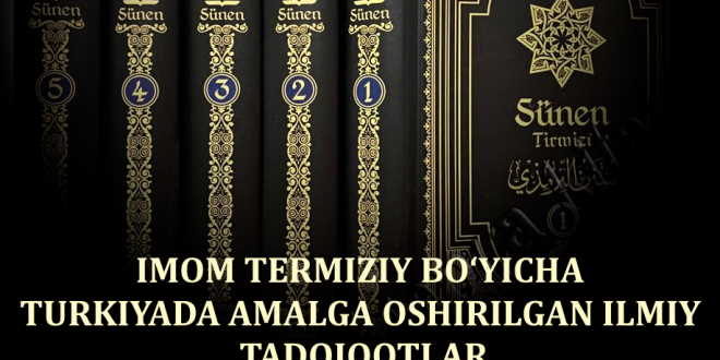 [6] Гёкче Азиз. Сунани Термизийнинг манбалари: тадқиқ ва таҳлил (Sünen-i Tirmizî’nin Kaynakları: Tespit ve Değerlendirme) / Нашр этилмаган докторлик диссертацияси. Сакария университети, 2022.– Б.171.