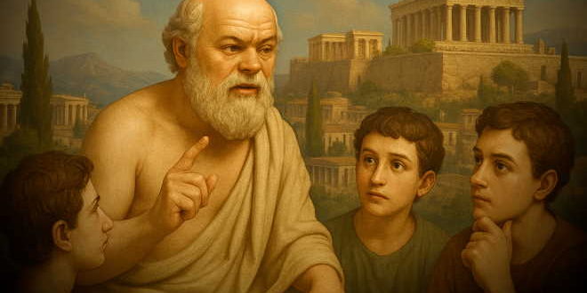 Антик давр файласуфи бўлган Суқрот мил.авв. 469 йили Афинада туғилган [10]. Мутафаккир фалсафа фани ривожида муҳим роль ўйнаган. У Афина демократиясининг инқирозга юз тутган палласида яшаб ўтган. Мазкур давр файласуф шахси ва ижодига катта таъсир ўтказиб, унинг кўп қиррали, мураккаб ва бетакрорлигини таъминлашга хизмат қилган.