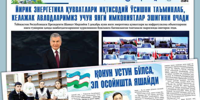 Ана шу ўзига хос ҳуқуқий уйғониш жараёнида халқимиз шу кунларда муҳим тарихий сана — Ўзбекистон Республикаси Конституцияси қабул қилинганининг ўттиз уч йиллигини “Конституция — инсон қадри, эркинлик, тенглик ва адолат гарови!” деган ҳаётий шиор остида кенг нишонламоқда. Бу тадбирлар ҳам Конституцияга янгича муносабатнинг, унинг жамият ҳаётидаги