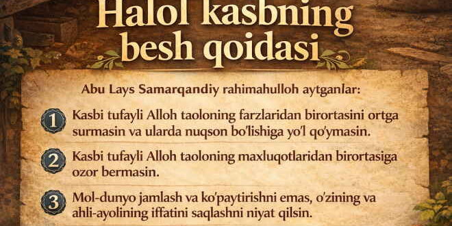 Ҳалол ризқ — фақат меҳнатда эмас, ниятда, адолатда ва тақвода эканини унутмайлик.