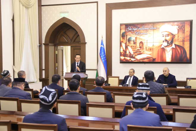 Имом Бухорий халқаро илмий-тадқиқот марказида буюк мутафаккир, давлат арбоби ва сўз мулкининг султони Мир Алишер Навоий таваллудининг 585 йиллигига бағишланган “Шеърият мулкининг султони — 585 ёшда” мавзусидаги маърифий тадбир бўлиб ўтди.