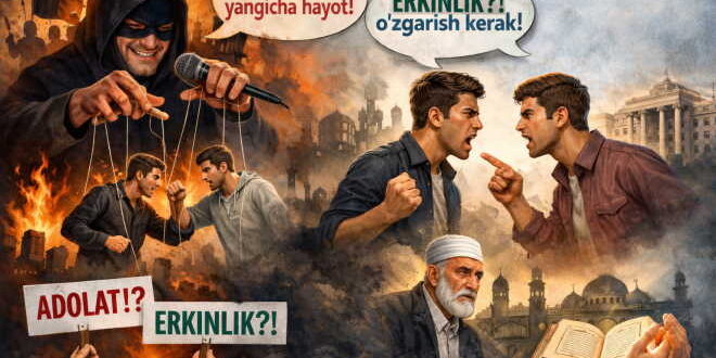 Ижтимоий тармоқларда тинч-осойишта яшаётган мусулмон халқлар орасида фитна чиқариб, конституцион ҳокимиятларни ағдаришни ўйлаётганлар, давлатни тузумини ўзгартиришга очиқдан-очиқ чақирмаса-да, гап-сўзлари замирида шунга ишора қилган ҳолда, ёшлар онгини лойқалашга интилаётганлар кўпаймоқда. Шулардан бири соф ўзбек тилида “Халқ ичида мана шунақанги жонкуяр одамлар бўлиши керак-да. Афғонистонда йигирма йил урушган бўлса ҳам ўзгариш ва ўзгартиришни истайдиган одамлар бор. Шом аҳли орасида ҳам зулмга қараб ўтирмайдиган, ўзгартиришни истайдиган одамлар бор” деб, одамларга бузғунчи ғояларни сингдиришга, жамиятда фитна тарқатишга ҳаракат қилмоқда. Ғаламис кимсалар бундай мазмундаги гаплар орқали одамларни ошкора эмас, балки ҳийла билан, хуфя тарзда ишонтиришга ҳаракат қилади. Бир қарашда шунчаки объектив (шахсий) фикрдек туюлган бу иборалар – аслида мавжуд тизим ва тузумга нисбатан шубҳа уйғотиш, одамлар руҳият қалбига фитна уруғини сочиш каби хавфли мақсадларга хизмат қилади.