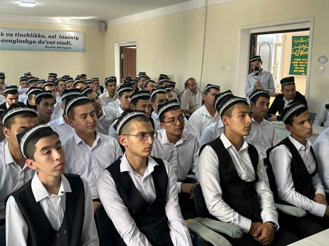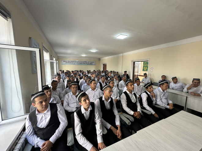 Ўзбекистон мусулмонлари идораси тасарруфидаги “Хожа Бухорий” ўрта-махсус ислом таълим муассасасида талабалар иштирокида “Виждон эркинлиги ва диний ташкилотлар тўғрисидаги қонун – келажагимиз гарови” мавзусида маънавий-маърифий тадбир бўлиб ўтди. Унда Имом Бухорий халқаро илмий-тадқиқот маркази илмий ходимлари Ж.Жумаев, Т.Эвадуллаев ва У.Муҳаммадиев мамлакатимизда диний соҳада амалга оширилаётган ислоҳотлар, аждодларимизнинг бой илмий меросини асраб-авайлаш ва тарғиб этиш мақсадида ташкил этилган илмий марказларнинг ўрни ва аҳамияти ҳақида атрофлича сўз юритди.
