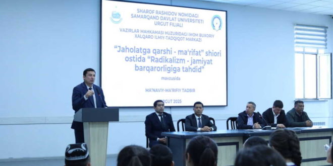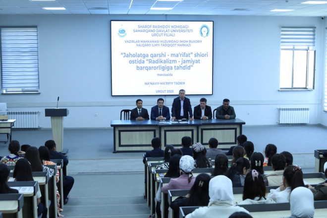 Вазирлар Маҳкамаси ҳузуридаги Имом Бухорий халқаро илмий-тадқиқот маркази томонидан Самарқанд давлат университети Ургут филиалида “Жаҳолатга қарши – маърифат” шиори остида “Радикализм – жамият барқарорлигига таҳдид” мавзусида маънавий-маърифий тадбир ўтказилди. Унда Марказ илмий ходимлари бугунги глобаллашув даврида ёшлар онгига ёт ва бузғунчи ғояларни сингдиришнинг олдини олиш, уларни соғлом дунёқараш, миллий ва диний қадриятларга ҳурмат руҳида тарбиялаш масалалари жуда долзарб эканини таъкидлади.