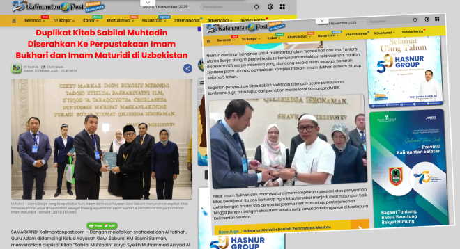 Ушбу қимматли асарнинг дубликатлари Имом Бухорий халқаро илмий-тадқиқот маркази ва Имом Мотуридий халқаро илмий-тадқиқот маркази кутубхоналарига топширилди. Бу ҳақда Индонезиянинг етакчи оммавий ахборот воситаларидан бири – “Калимантан Пост” нашри ҳам хабар тарқатди.