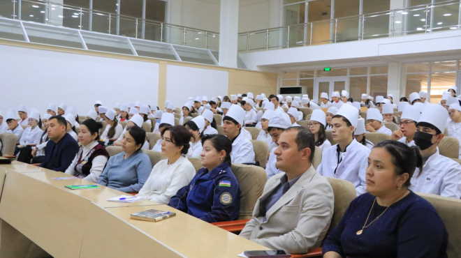 Урганч давлат тиббиёт институтида Имом Бухорий халқаро илмий-тадқиқот маркази ташаббуси билан “Миллий қадриятлар ва уларнинг миллат маънавиятидаги ўрни” рукнида “Ўзбекистон – миллатлараро тотувлик ва бағрикенглик юрти” мавзусида маънавий-маърифий учрашув ўтказилди.