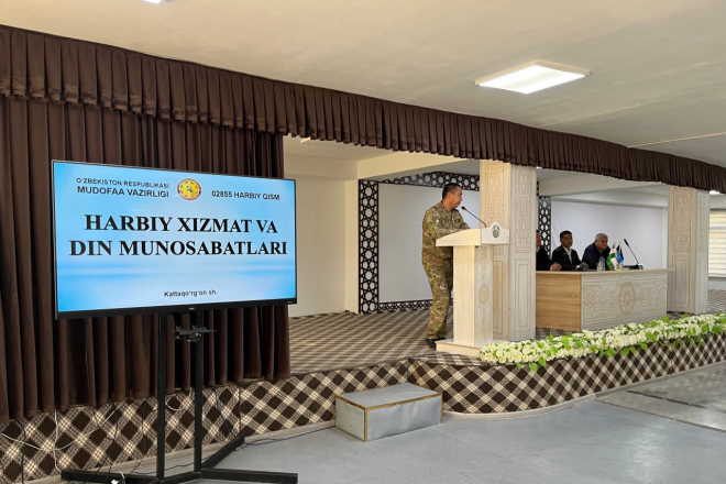 Каттақўрғон гарнизонида жойлашган ҳарбий қисмда “Коррупция ва ҳуқуқбузарликларни бартараф этишда ҳуқуқий маданият ҳамда ҳарбий хизматда диний масалаларнинг ўрни” мавзусида маърифий давра суҳбати ташкил этилди.