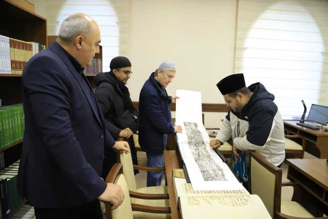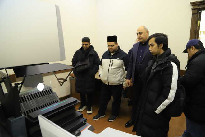 Марказ директорининг ўринбосари Отабек Муҳаммадиев меҳмонларни музейнинг экспозициялари, қўлёзмалар фонди, илмий ишланмалар ва мавжуд шароитлар билан таништирди. Делегация аъзоларига Марказнинг алломалар илмий меросини ўрганиш, қўлёзмаларни тадқиқ этиш ва рақамлаштириш, илмий-амалий лойиҳаларни амалга ошириш борасидаги фаолияти юзасидан маълумот берилди. Томонлар илмий ҳамкорлик масалалари юзасидан фикр алмашди. Икки муассаса ўртасида келгусида амалга оширилиши мумкин бўлган академик алоқалар, тадқиқот йўналишлари ва ташкилий масалалар бўйича ҳамкорлик имкониятлари кўриб чиқилди.